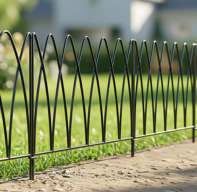 Each panel measures 45 cm high x 45 cm wide. Supplied as a pack of 5 panels, giving a total length of around 2.3 m. Made from high-quality wrought iron with a durable powder-coated finish, this fence resists rust, corrosion and the elements, ensuring long-lasting outdoor use.